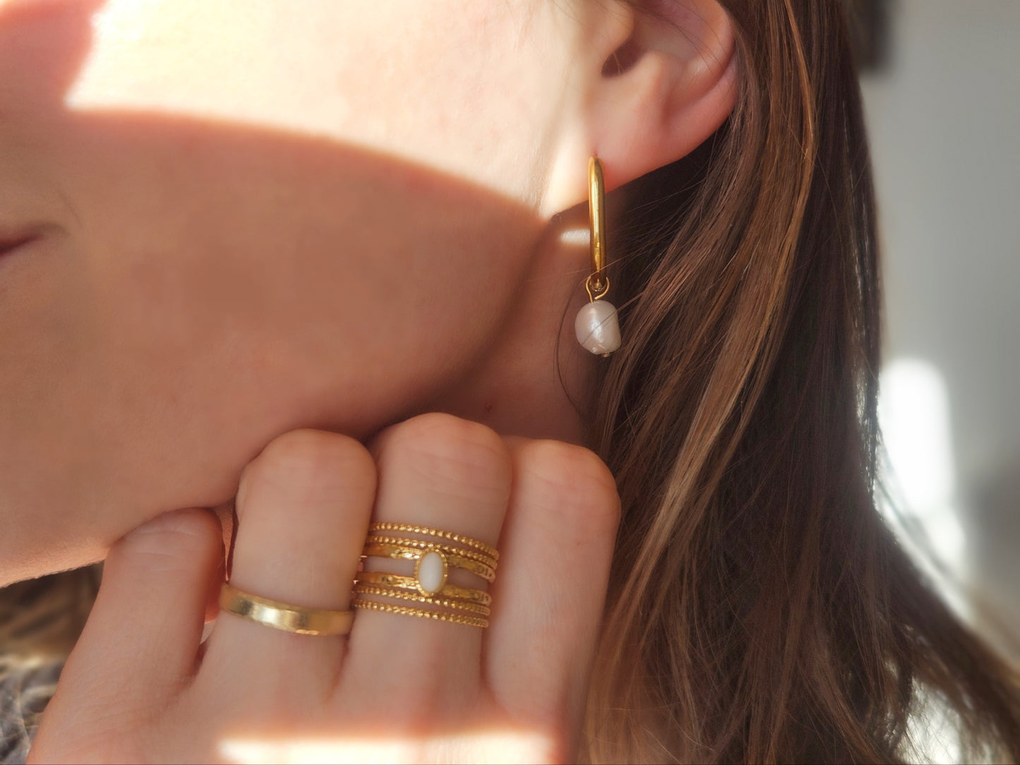 Les boucles d'oreilles Elva contiennent une semi créole ouverte avec une petite perle d'eau douce qui vient sublimer cette création faite pour vous. Légères confortables et très élégantes, elles sont idéales pour le quotidien comme pour les occasions spéciales.