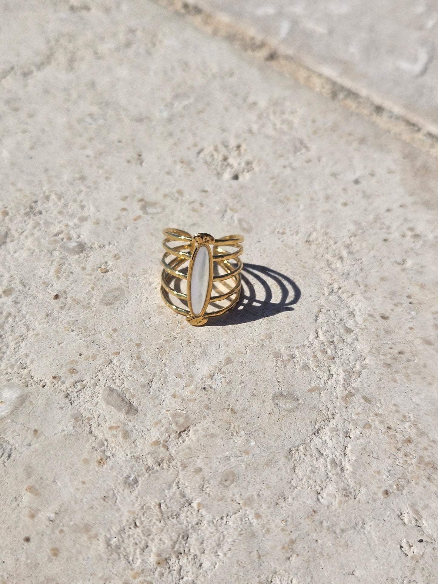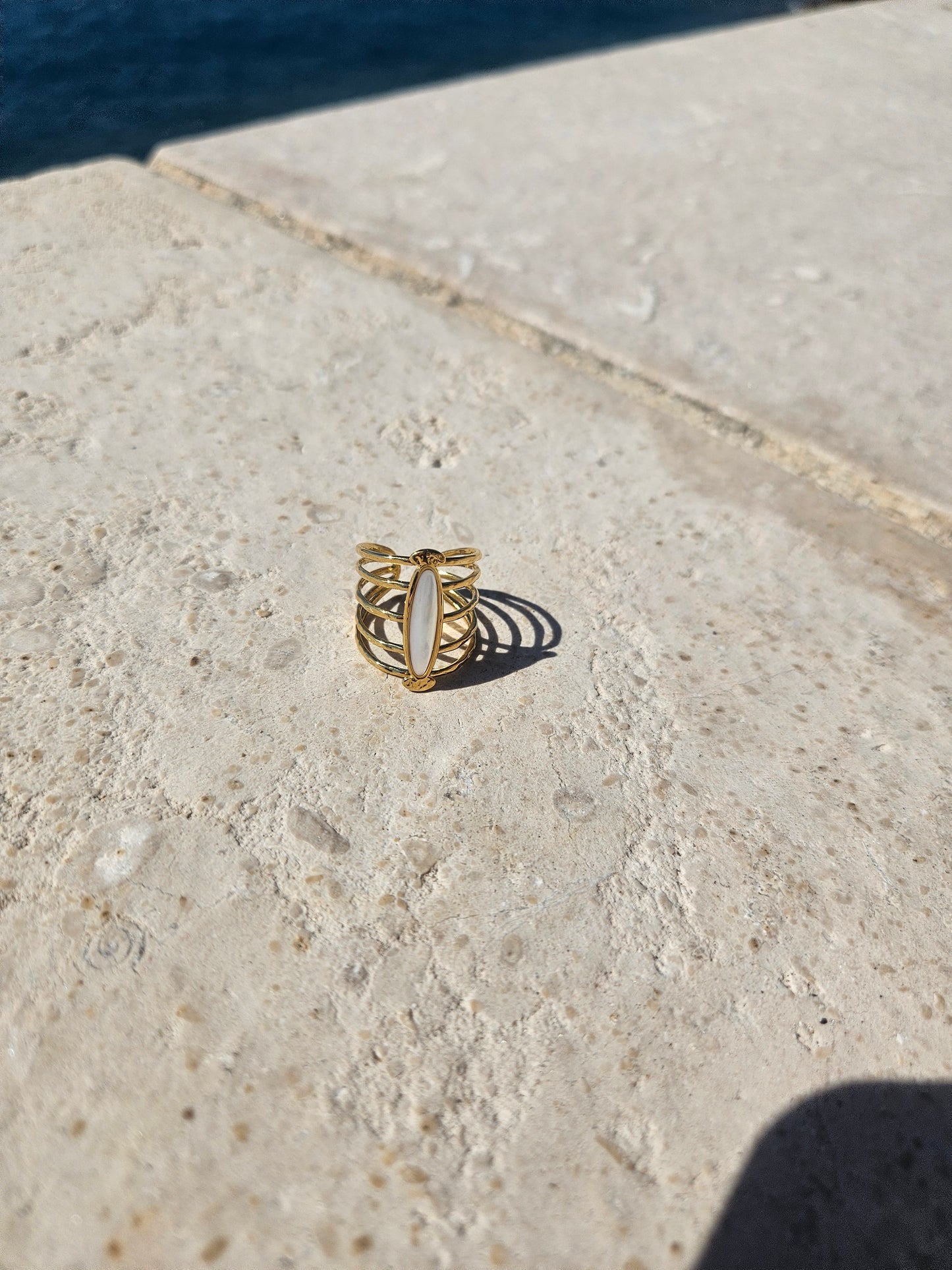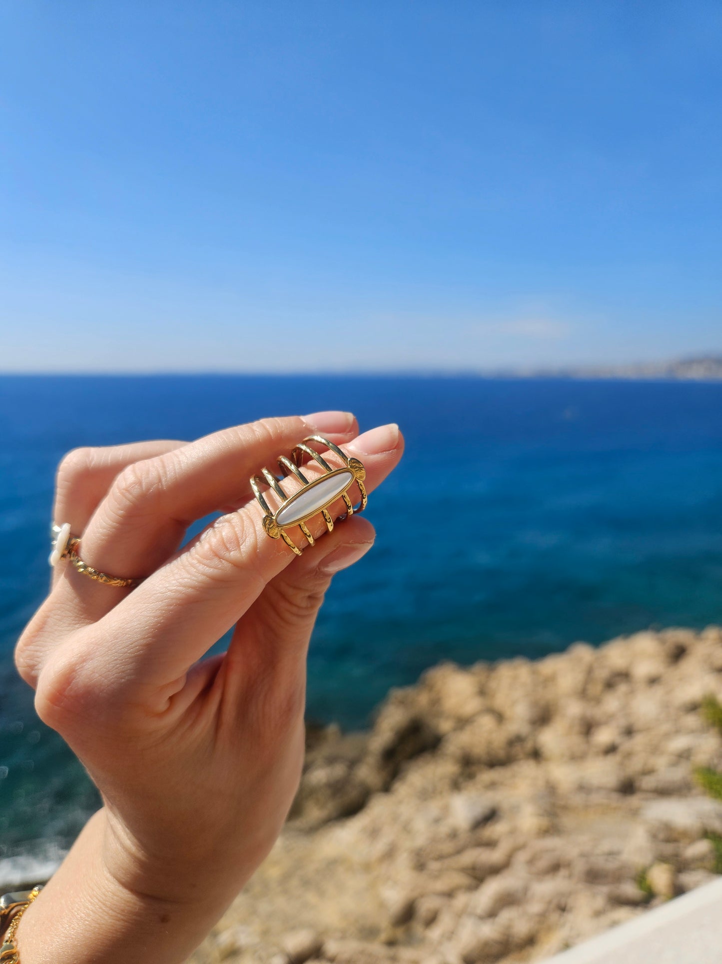 Laissez-vous séduire par la beauté de la bague Calina et sa sublime nacre. Ajustable, elle s'adaptera parfaitement à vos doigts.