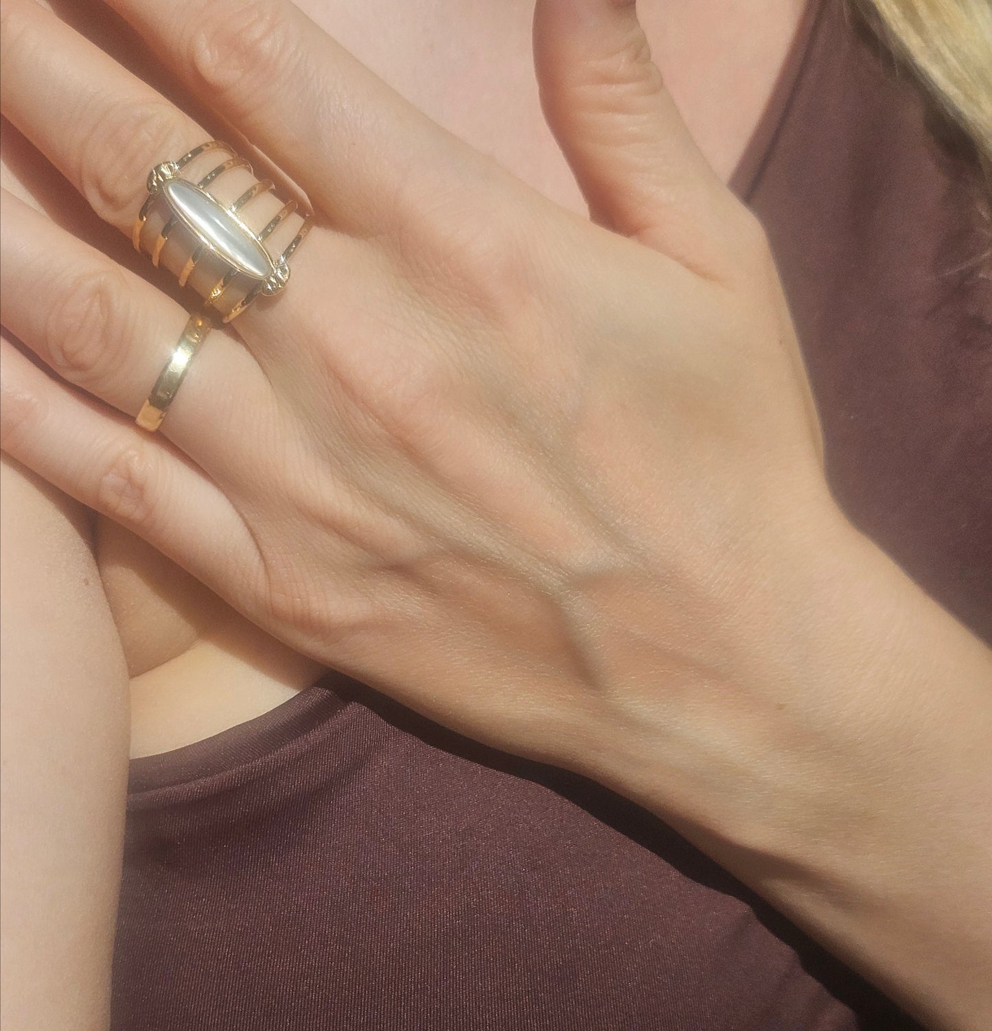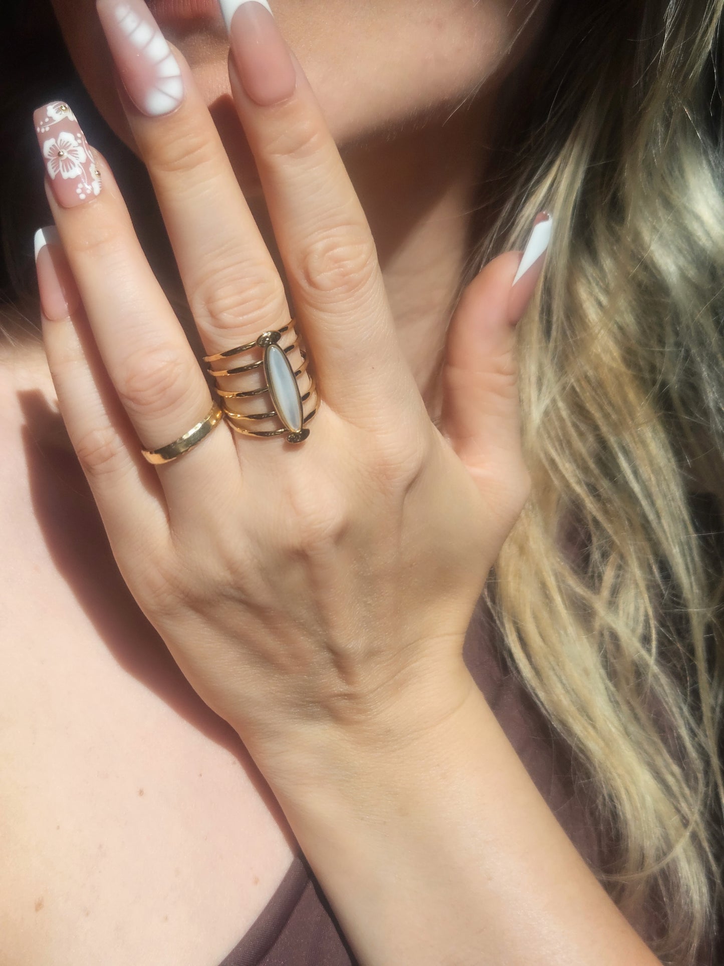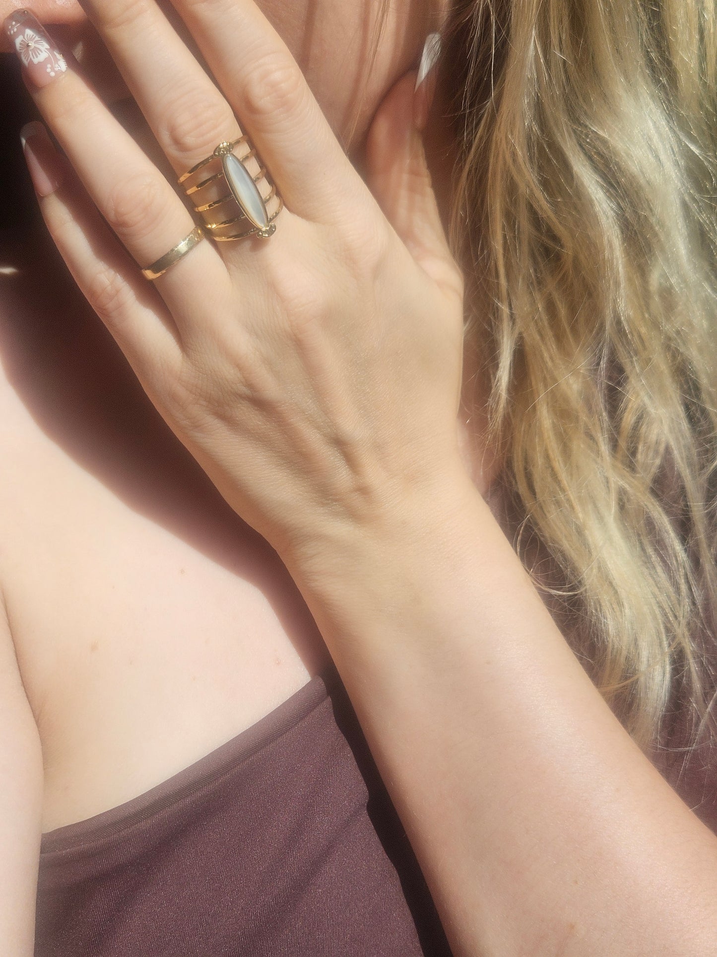 Laissez-vous séduire par la beauté de la bague Calina et sa sublime nacre. Ajustable, elle s'adaptera parfaitement à vos doigts.