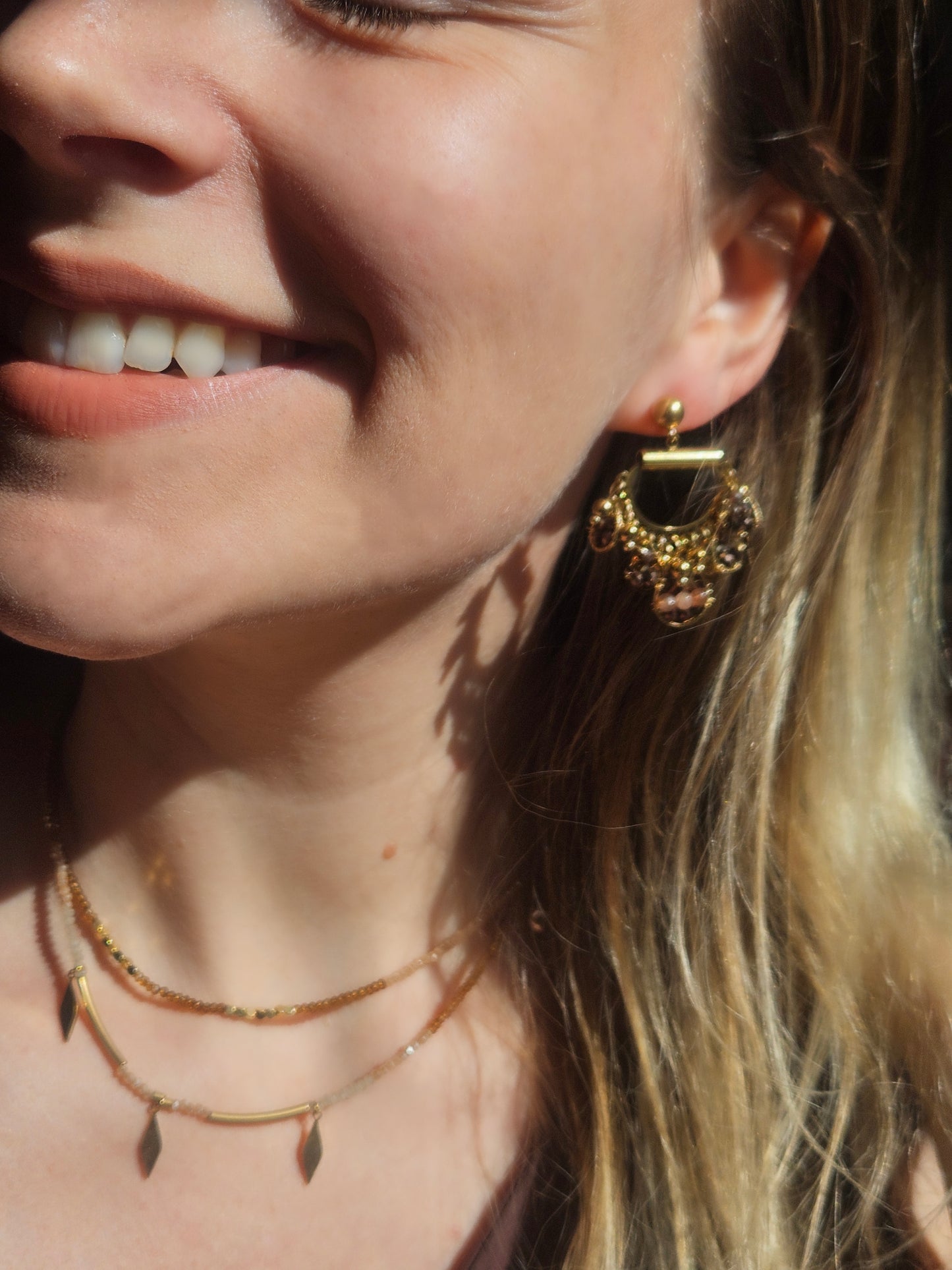Craquez pour la beauté des boucles d'oreilles Clara. Leur jolies perles colorées délicatement disposées accorde à ce bijou beaucoup de charme.