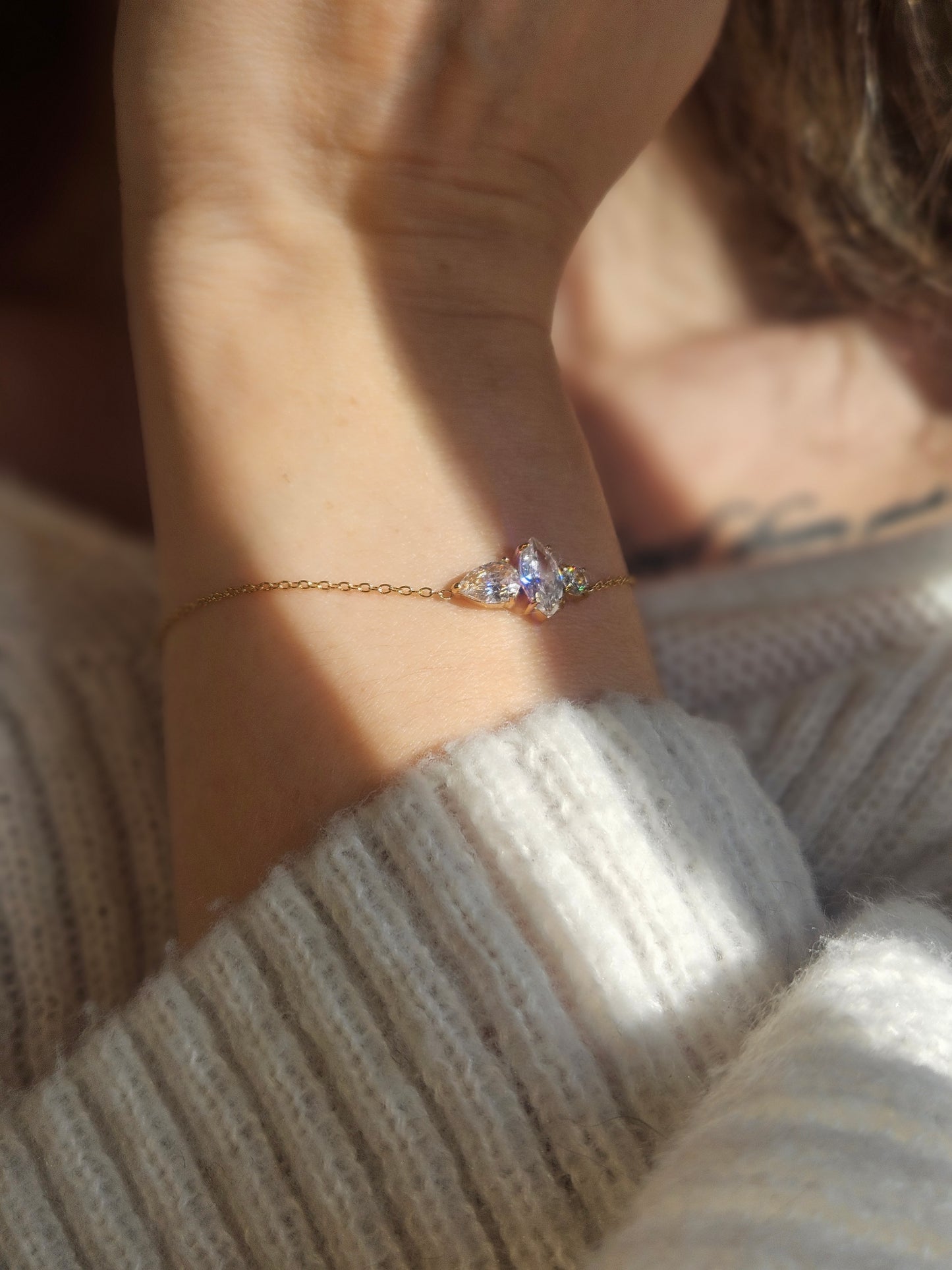 Le bracelet Izar contient de jolis cristaux sur une chaine fine.