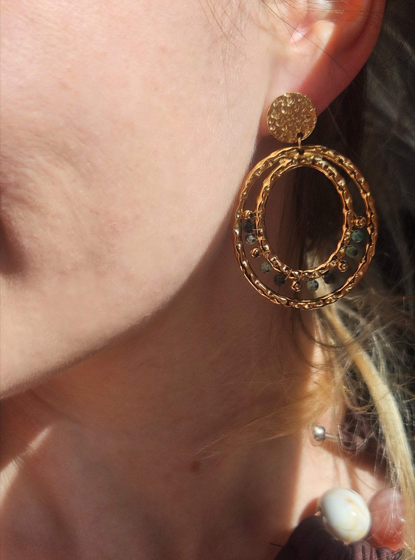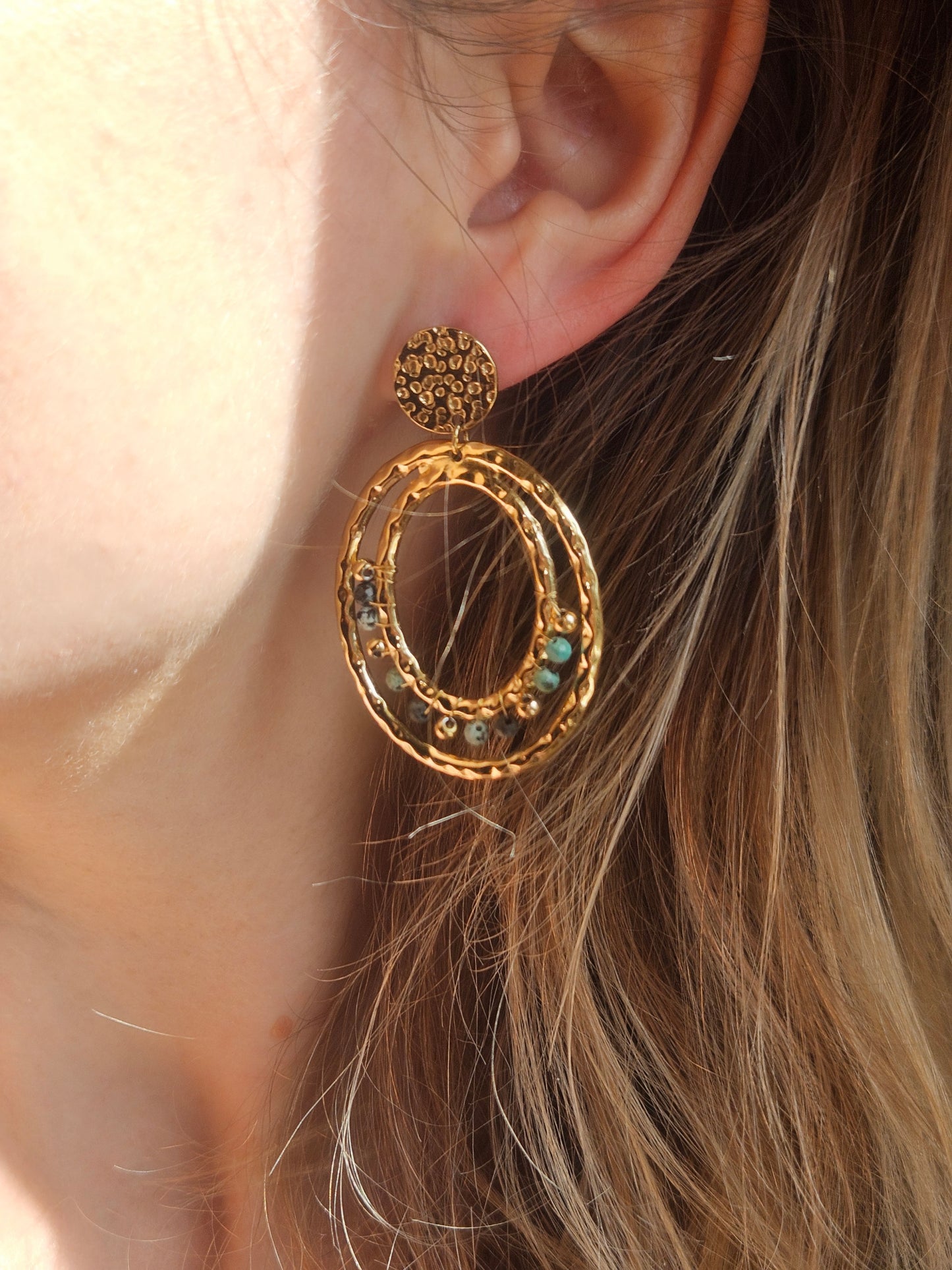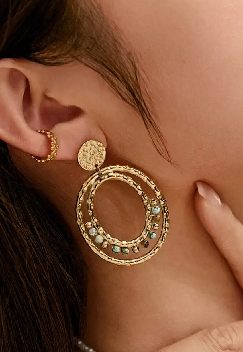 Craquer pour la beauté des boucles d'oreilles Marjane avec de la pierre de turquoise africaine. Légères et confortables, ces boucles d'oreilles sont faites pour vous.
