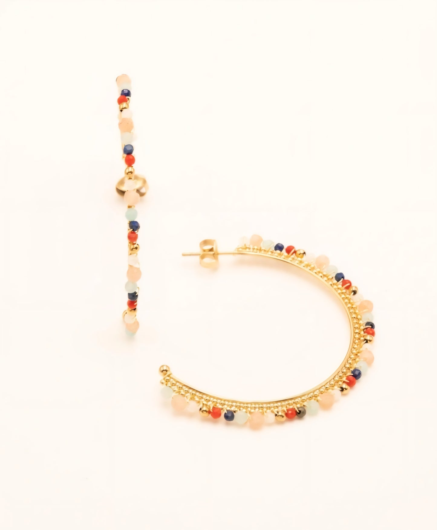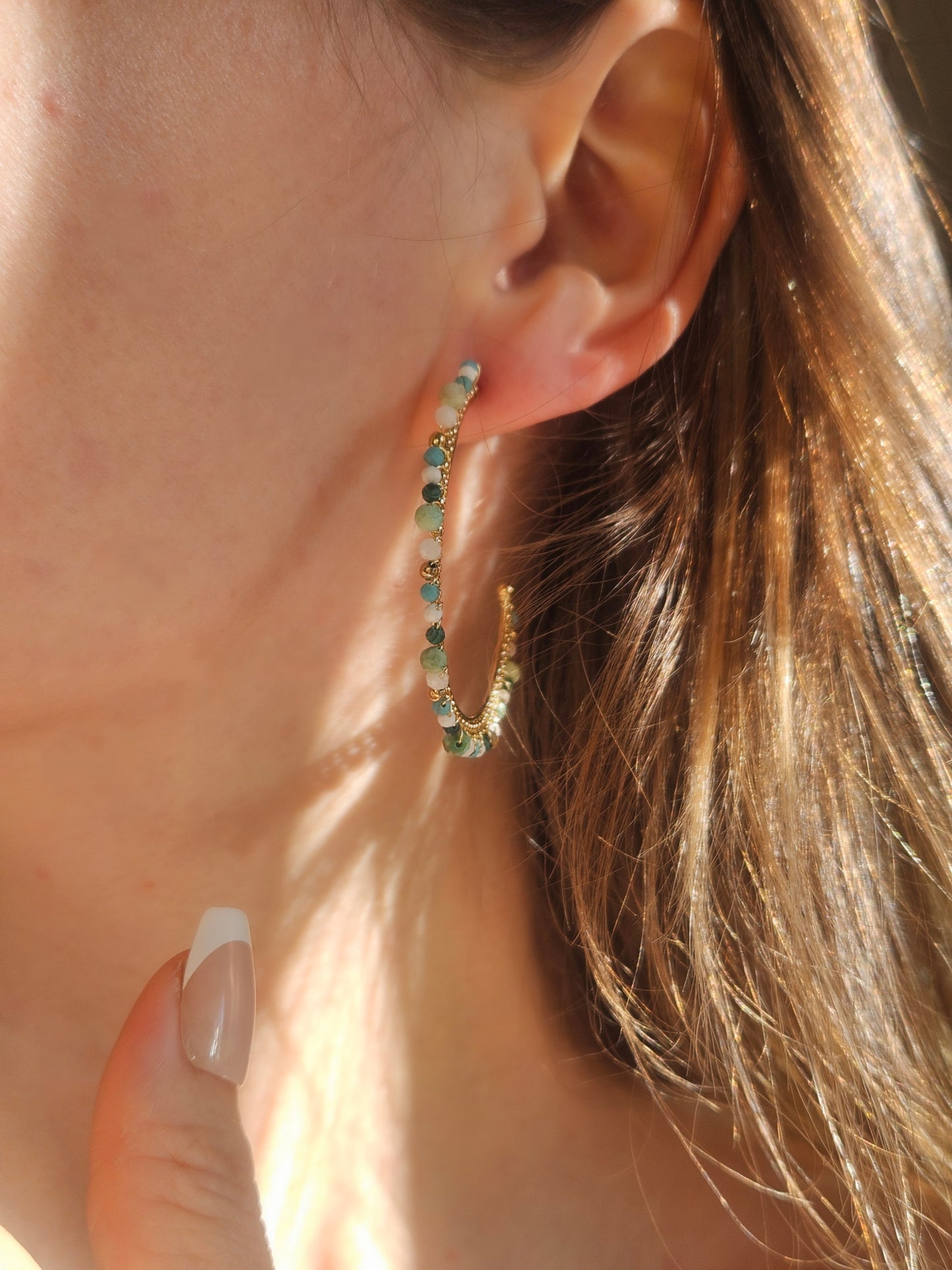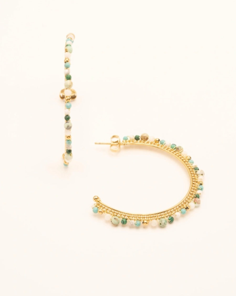 Les sublimes semi-créoles Olivia en pierres naturelles sont super légères, colorées et apportent une touche de bohème à votre look.