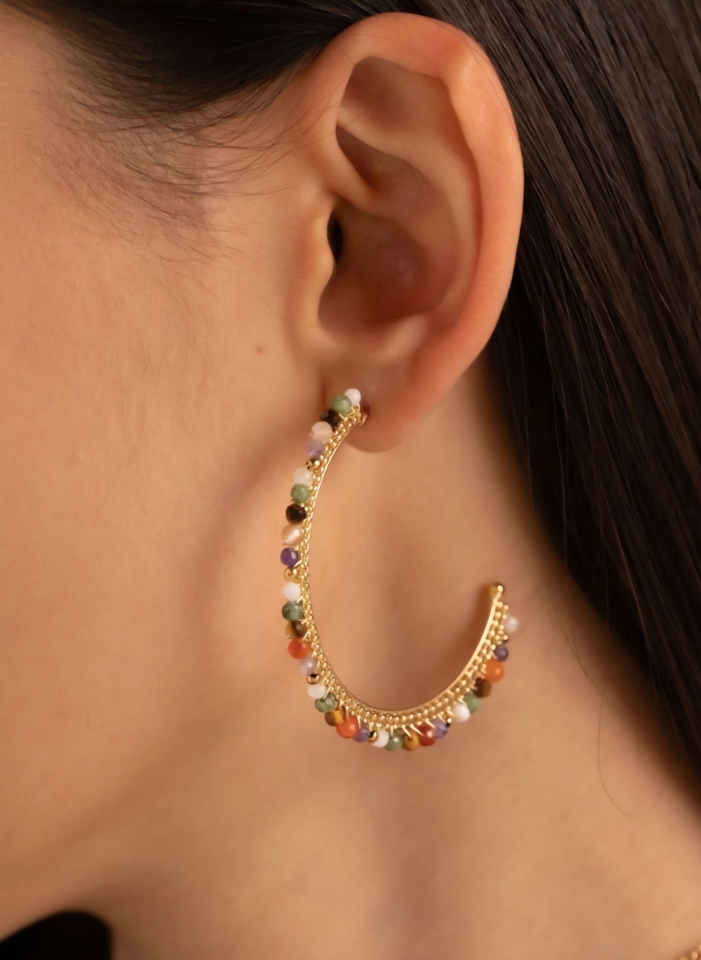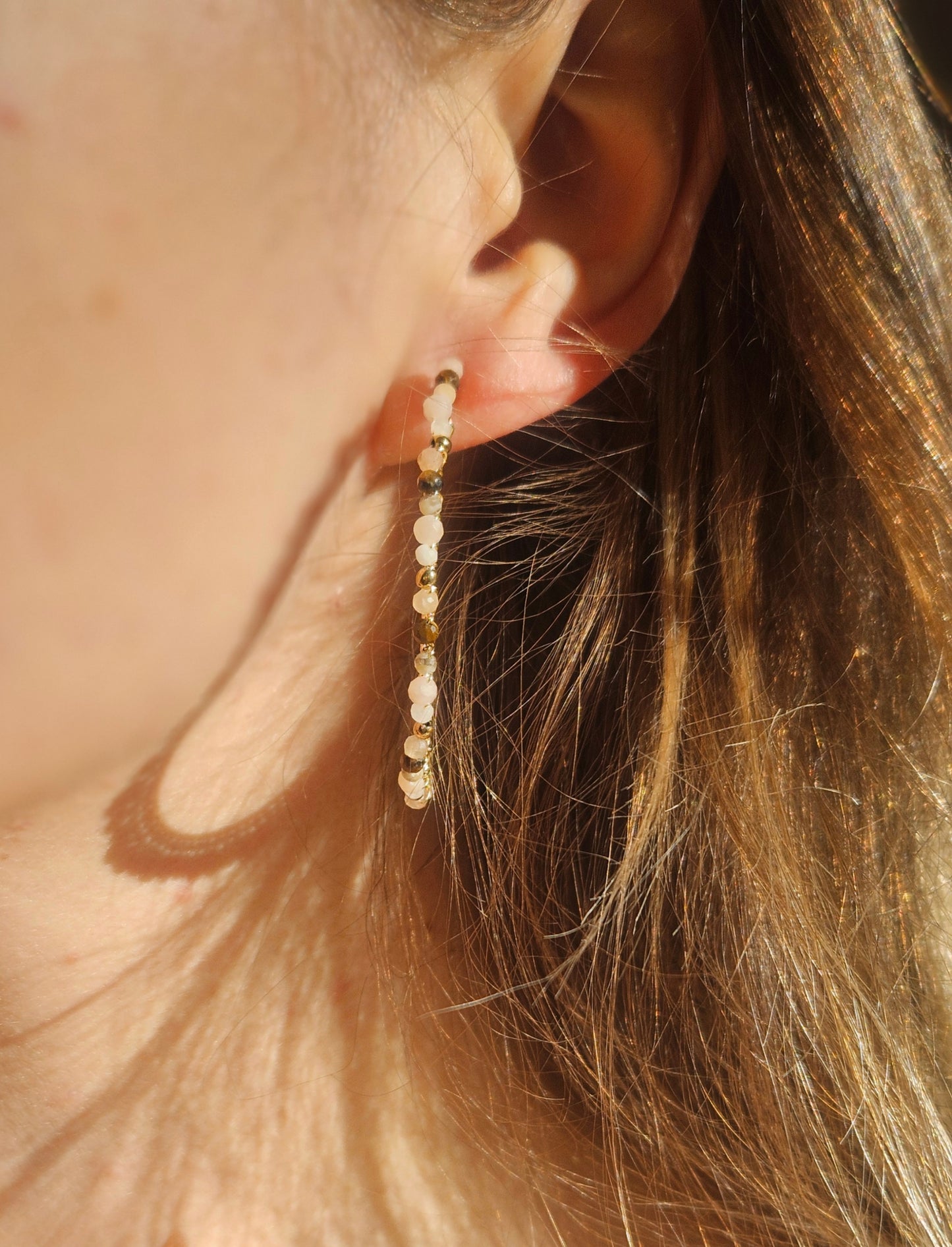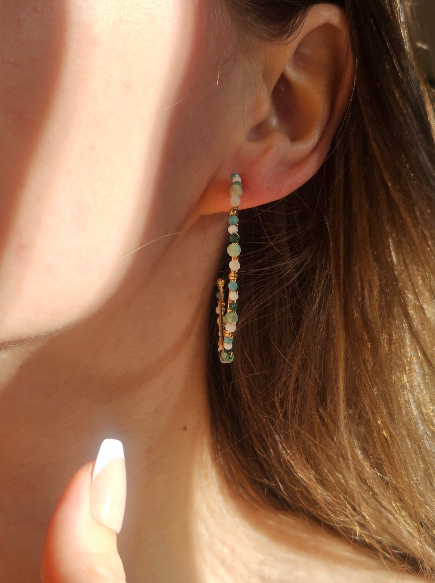 Les sublimes semi-créoles Olivia en pierres naturelles sont super légères, colorées et apportent une touche de bohème à votre look.