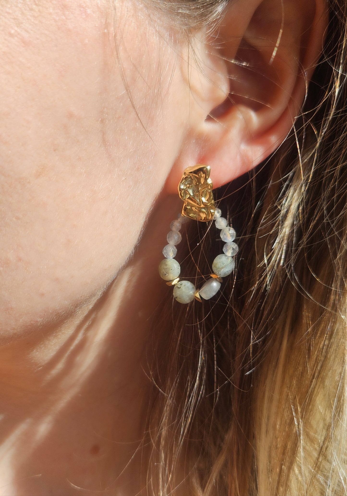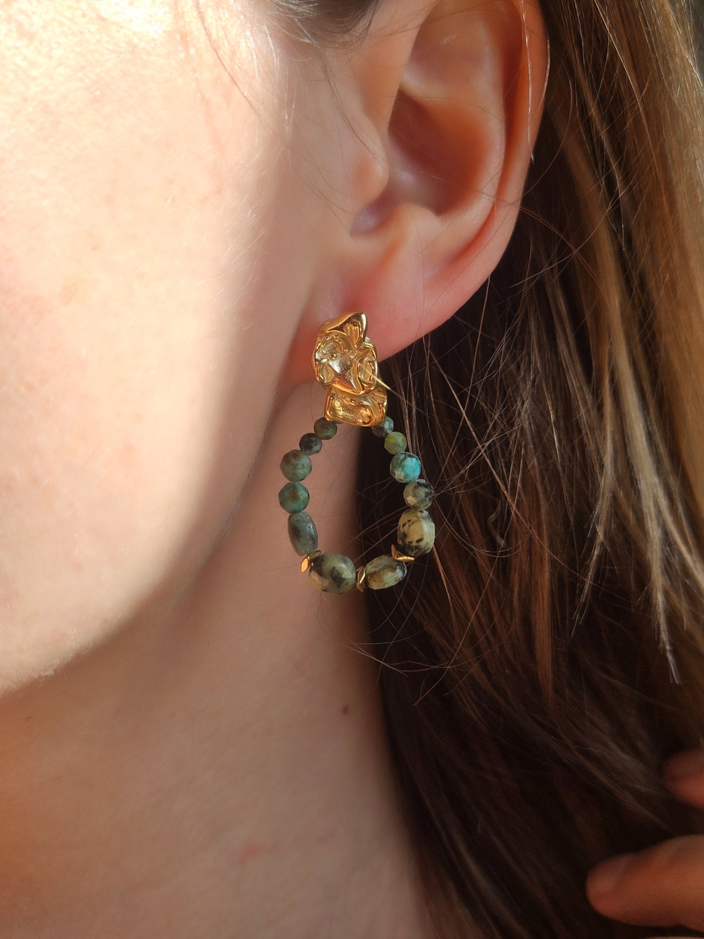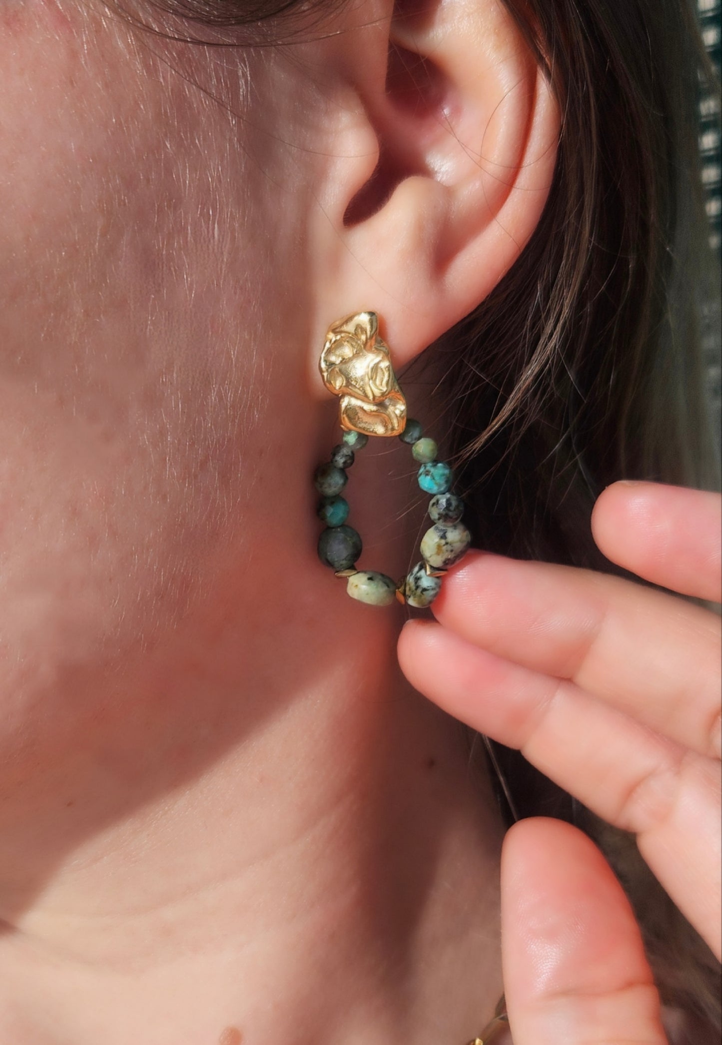 En labradorite naturelle ou turquoise africaine, la beauté de ces boucles d'oreilles ne vous laissera pas indifférente.